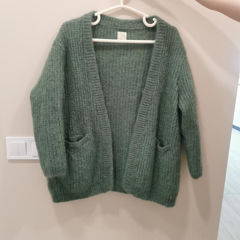 Кардиган розміру S-M, ніжний до тіла, пастельно-м'ятного кольору, рукав укорочений