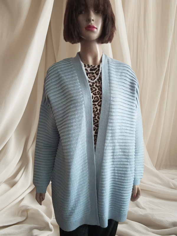 кардиган красивый голубой цвет, на фото отражает свет, большого размера, пог, 66 см, длина 80 см,