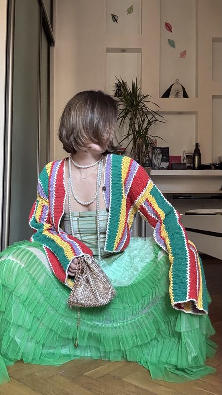 👉і Хендмейд кроше кардиган від британського бренду Wild Orange Tree (ціни від 120 фунтів стерлінгів на такі кардигани) Склад: 100% бавовна 🟢Розмір: S-M Плечі (спущений плечовий шов): 51 см Поб грудей: 48 см Довжина: 39 см