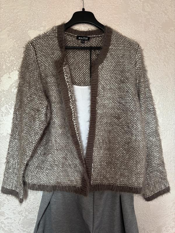Кардиган жіночий у сіро-коричневу -оливковому відтінку ,розмірXL(52р).Підійде під блузку,футболку.Приємний на дотик ,має легкий ворс