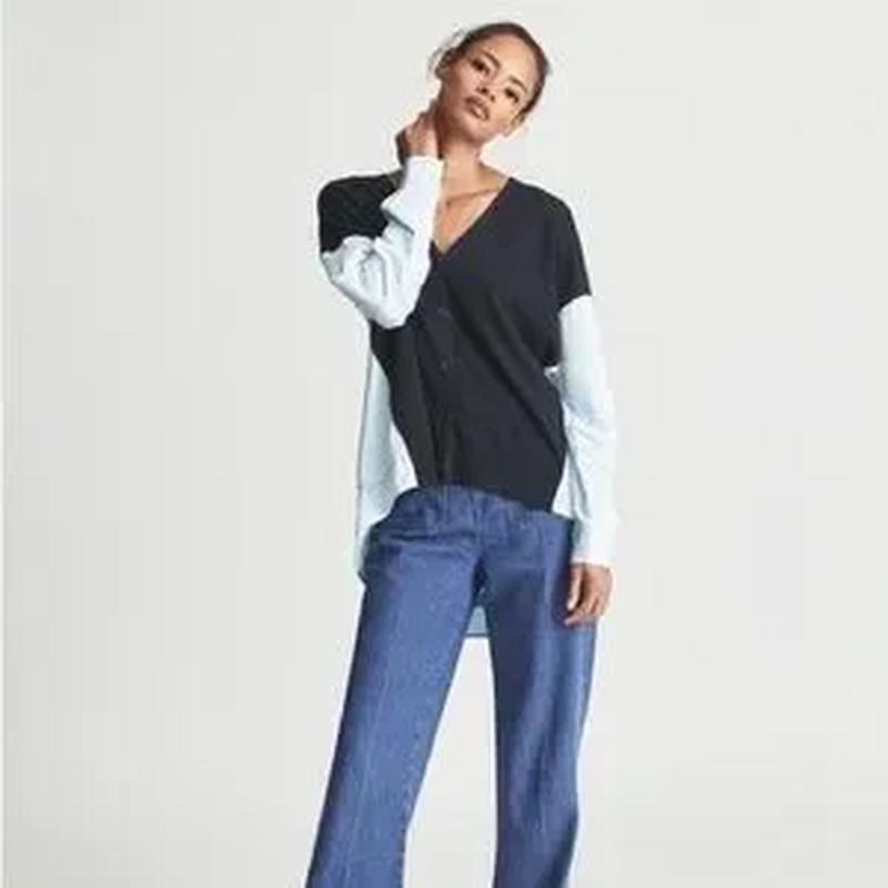 Розмір по бірці 12( підійде на Л, невелика ХЛ) Ширина під пахвами-59 Талія-61 Ширина внизу-67 Довжина по спинці-73, дві спереду-63 Рукав від коміра-72