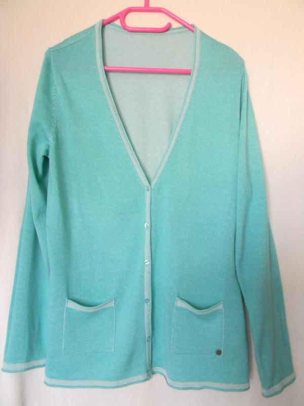 Кофта кольору м'яти AJC Розмір 44/46 Стан-ідеальне Виробництво-Німеччина Складу-52% коттон,48% акрил ШП-41 ПОГ(під мишками)-53 ПІТ-51 ПО низу-54,5 Довжина виробу-72 Довжина рукава-68 ПО верху рукава-17,5