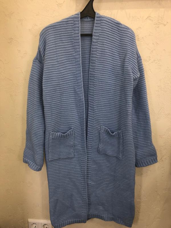 Продам свой обидный пролет. Очень красивый кардиган. В реальности цвет светлее, красивого нежно голубого цвета. Есть каталожное фото , вышлю по запросу Покупала кардиган через Инстаграм. Бирок нет, но вещь абсолютно новая. Получила в пакете (см. на фото) так и продаю Размер: 42-46 Машинная вязка : 50% шерсть, 50% акрил. Качество супер! Цена: 550 грн. Я покупала дороже, это со скидкой. Продаю, потому что на мне не очень красиво сел. Красиво будет девушкам от 165 см ростом и выше. Я 160 см и мне длинный сильно. Отправляю Новой почтой Возврата нет