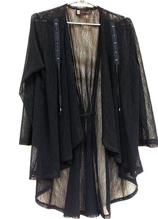 👇size L 🍒PURPLE ROSE🍒 нова Підійде на M,L,XL Цей кардиган для любителів сти- лю бохо і гранд в одязі. На усі випадки життя. Чорний кардиган у стилі бохо, оверсайз. Це легка напівпрозора накидка вільного крою з довгими рукавами з відкри тим передом. Асиметричний поділ (стиль "водоспад"), декора- тивні елементи у вигляді шнурівки Вшитий рукав. Виглядає сучасно та стильно на будь-якій фігурі. Подовжений асиметричний крій надає образу легкості та воздуш- ності. Гарно лягає по фігурі.Відмін -на розтяжність. Річ приємна на дотик і до тіла. 👇 Обов'язково звірте виміри ДО покупки. Виміри у спок.стані: - ПОГ, ПОТ, ПОБ - вільний крій - Довжина по спинці 81 см - Довжина спереду 61 см - Плечі 44 см - Рукав 50 см 🙂 З нетерпінням чекаю у мене на сторінці. Бажаю вдалих покупок і супер настрою від них.