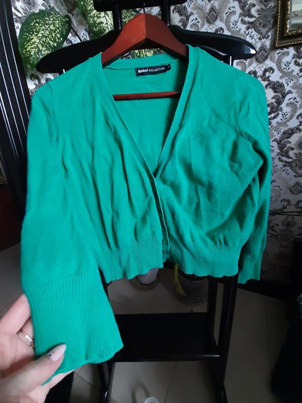 красива укороченая кофточка зеленого кольору, на гудзиках...всі ґудзики на місці