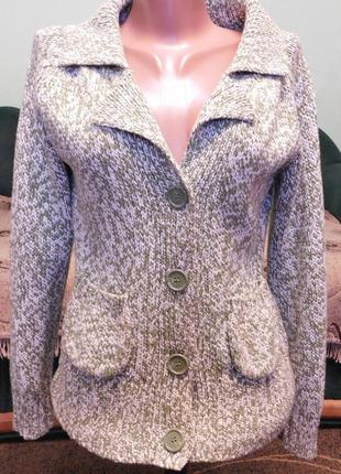 Очень красивый и теплый кардиган с карманчиками.Можно носить самостоятельно как пиджак.Состояние новой вещи,носился мало и аккуратно.Длина рукава 72см от воротника,ПОГ-44,длина-53см,можно и на М носить