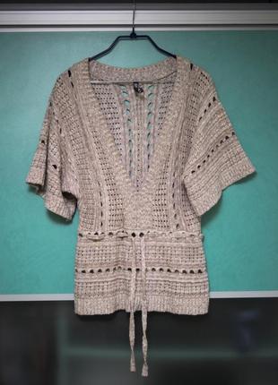 Размер L Кофта вязанная, накидка, можно носить с водолазкой, рукав 3/4, на талии стягивается, состояние отличное, дефектов нет