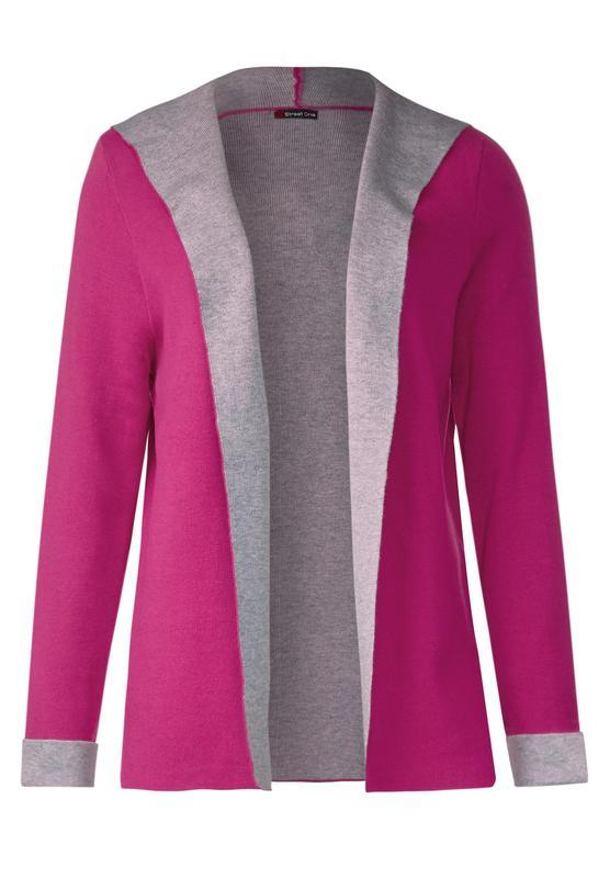 Яскравий кардиган, соковитий колір фуксії, всередині - спокійний світло-сірий. Розмір 38 -плечі 40, рукав приспущено 59, довжина 68. Розмір 42 - плечі 45, рукав приспущено 60, довжина 71.