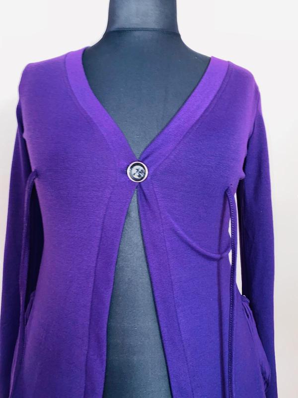 Трикотажна кофточка Cop.Copine. Застібається на один ґудзик у зоні грудей З боків — накладні кишені. Состав - 95% Cotton. 5% Lycra Гарний бузковий колір. НОГ — 44-46 см Довжина рукава — 63 см, Довжина виробу — 73 см Ви однозначно залишитеся задоволені якістю вироби. Ціни розпродажні, і набагато нижчі за якість. Повний асортимент товару за розпродажними цінами шукайте в нашому інтернет-магазині "Мадам Шарман". Гугліть!