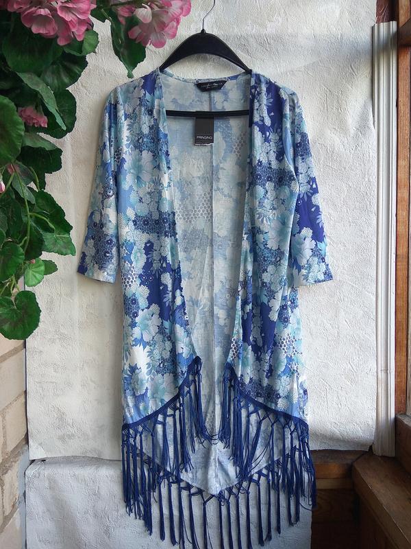 кофта накидка бахромою квіти розмір SMALL, EURO 2, US S 100% поліестер тонкий трикотаж пог 50 низ 50 плечі 35 пройма 20 довжина 60 мін 90 мак +бахрома 15 рукав 40/30/50 стан новий