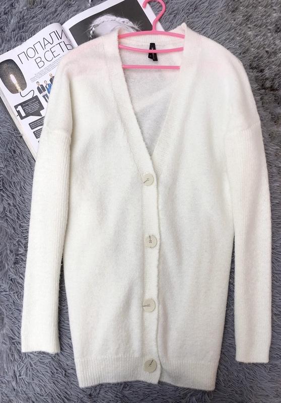 Теплий, вовняний кардиган білого кольору Розмір L Довжина виробу-74 див. Пог-50 див. Побіди-46 див Рукав-50 см Плечі-59 див.