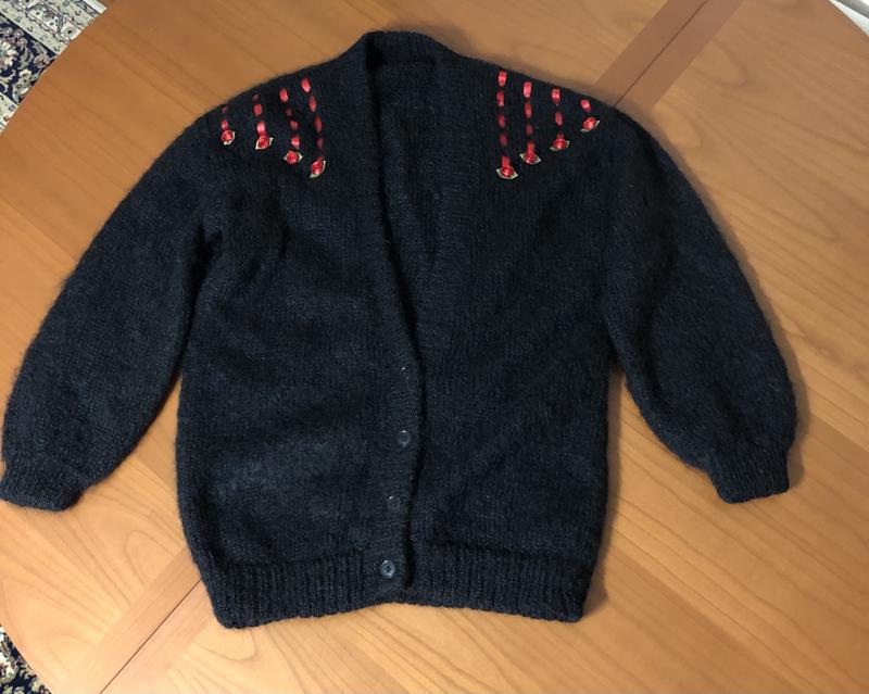 Гарний кардіган З гр-57 Ширина плечей-60 Плечі спущені Довжина рукава від горловини-79 довжина кардігана-83Наостаньому фото показана незамінну підшито підняту петлю Альо кардіган новийПо низу - 50