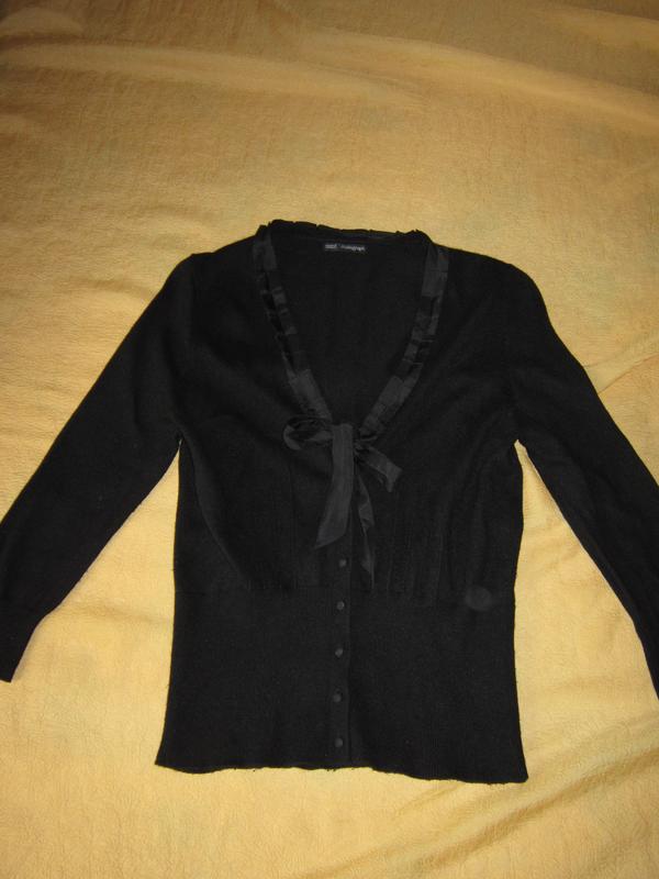Красива чорна кофточка з бантом Застібається на гудзики. обтягнуті атласною тканиною такий же як і бант і плісировані складки навколо горловини.