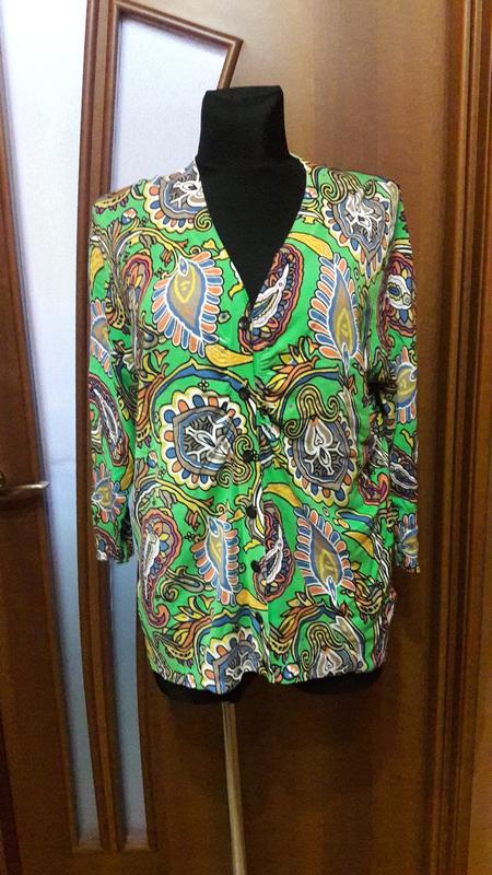 Яркая,весенняя кофточка на пуговицах послужит вам и весной и летом. Удачная расцветка, которая скроет то, хочется скрыть и подчеркнет достоинства фигуры.