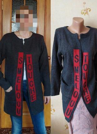 В нашем магазине грандиозная распродажа!!Смотрите др. лоты! Цены снижены!Шикарные модные серые кардиганы, с карманами по бокам, плотная вязка. Два цвета в наличии темно- серый и светло-серый. Размер не указан,смотрите замеры ! Качество отличное. Идет на наш 46 - не полный 48р. Есть схожий кардиган идет на 44р. ПОГ - 48 см - 50 см длина - 74 см - 76 см рукав - 57 см - 59 см