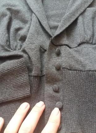 Тонкий, добротний трикотаж.укороченый,довжина по спинці 45,рукав 60. Красиво дуже на фігурі. Глибокий сірий колір.