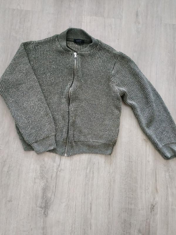 Класна, стильна кофта на блискавці, колір хакі з люрексовою ниткою. Довжина 54, рукав від горловини 68, ширина 52. Крута кофта під будь-Look