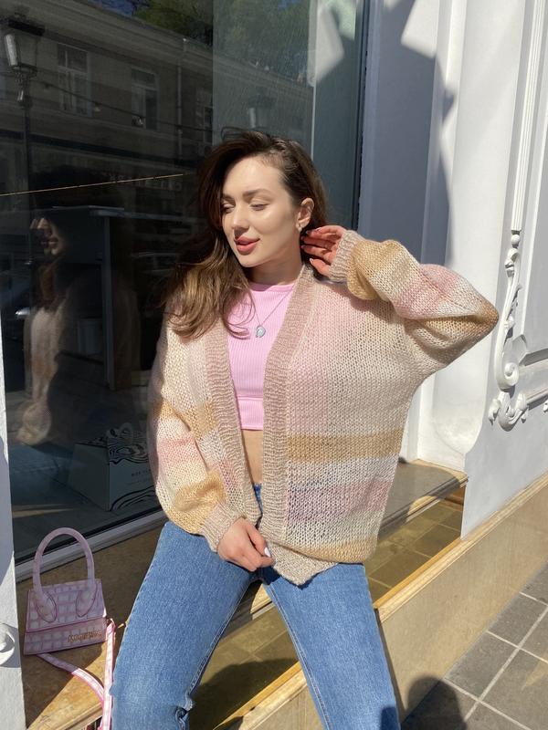 Кардиган oversize - з ним ви створите затишний та романтичний образ, водночас це незамінна та зручна річ у гардеробі. Відмінно поєднується з сукнями, спідницями, брюками та джинсами. Кардиган сплетений вручну. Повністю натуральний склад. Інструкція з догляду: ручне прання в теплій воді з рідким засобом, не віджимати і не сушити в пральній машині, не викручувати при ручному віджимі. Сушити у розкладеному вигляді на горизонтальній поверхні.