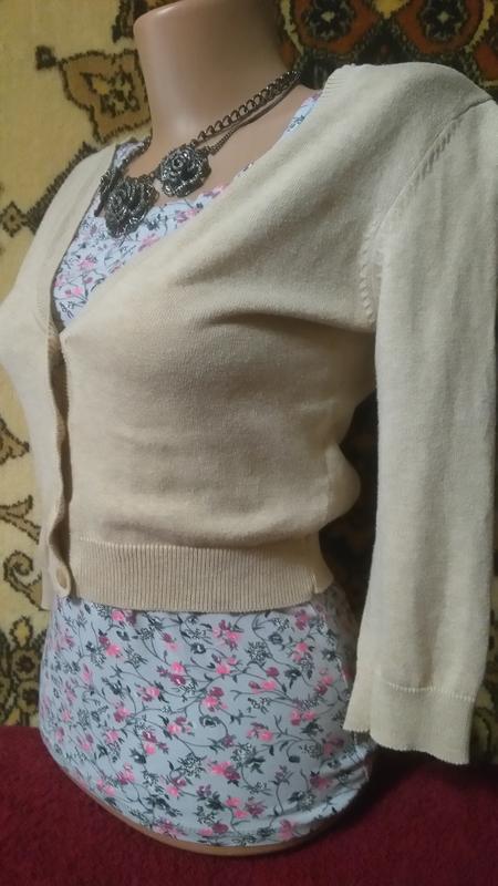 Кардиган, кофточка коротка, як болеро. Розміри: плечі 37; пог 39; довжина 41.