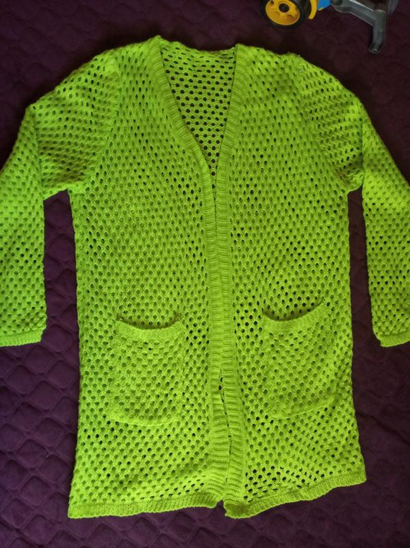 Чудовий насичений( кислотний) салатовий колір, у язка. Розмір універсальний. Підходи до джинсів і до сукні.