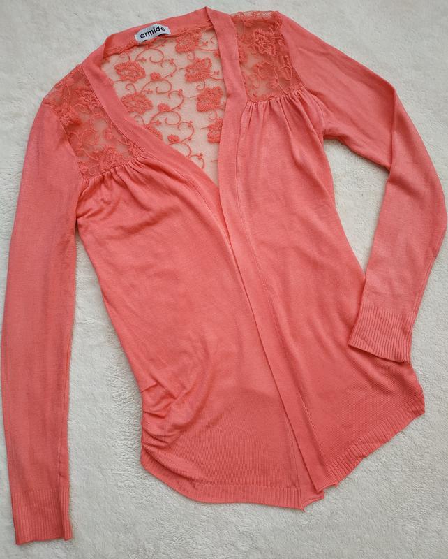 Кофта з мереживною спинкою В ідеальному стані Заміри: Довжина - спереду 66 см, ззаду 52 см Рукав - 53 см Ширина по спинці 42 см Стрейч, 100 % коттон Додаткові фото, заміри по запиту Оплата на карту Відправка Нова пошта, Укрпошта