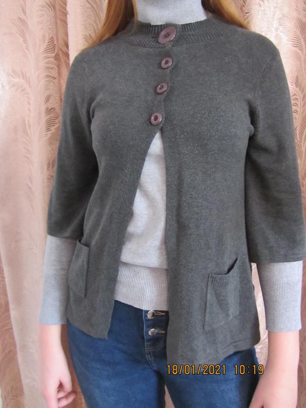 Кардиган Fusan sweater темно-сірого кольору. ОГ 42см. Ширина по низу 48см. Довжина 60см. Довжина рукава 35см.