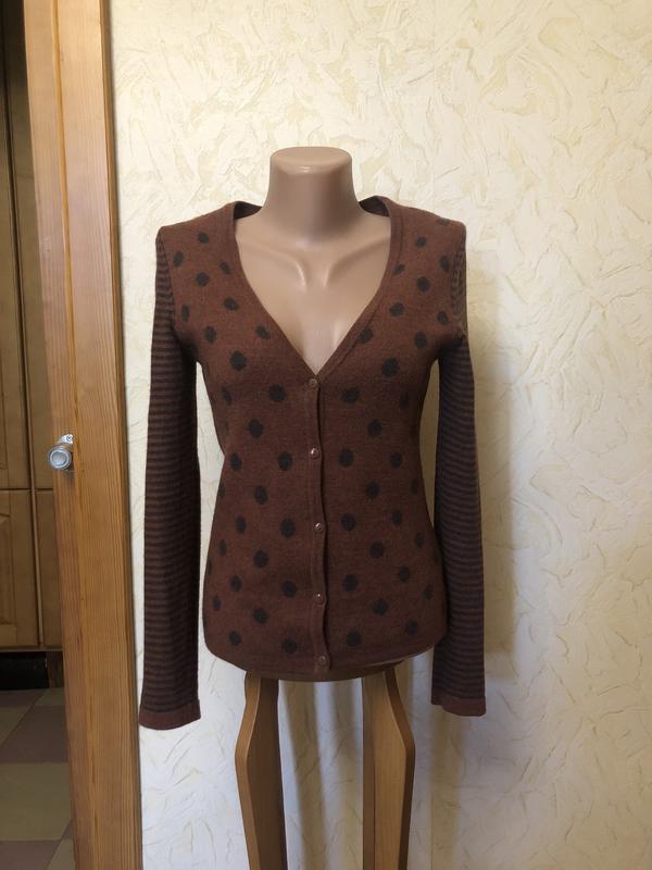 Шерстяная кофточка. Немного подсела после стирки. Но мягкая и не сбитая. Не очень тонкая. Спереди как бы двойная ткань. Италия