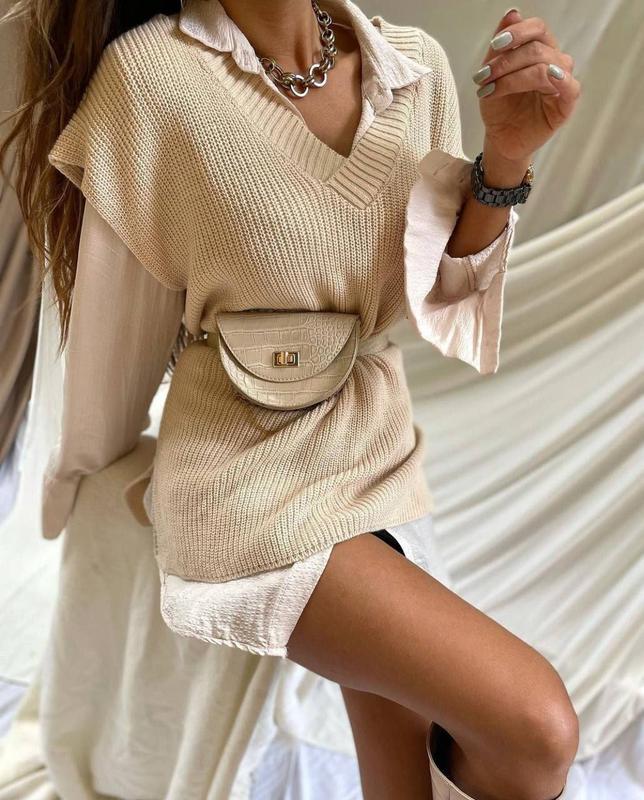 🥥НОВИНКА🥥 (силиан) Модель 249 темный беж, 250 светлый беж Создавай деловые и свободные образы с помощью трикотажной жилетки. Модель имеет прямой крой, V-образный вырез горловины придает образу элегантности и лаконичности. 📌Материал: мелкая машинная вязка 📌Размер: 42-46 📌Цвет: светлый беж, темный беж 📌Замер: длина 63/70 см; ПОГ 55 см 📌Цена: 550 грн 🪡Производство Турция