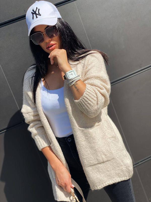 В цей вітряне час тебе точно врятує наш неймовірний кардиган. Він огорне тебе теплом і ніжністю. І якщо ти любиш якість - то це безперечно твій варіант з натуральної пряжі. Виробництво Туреччина ▪️Модель 159 ◾️Склад: 80% акрил, 20% поліестер ◾️Довжина: 70 см ◾️Довжина рукава: 49 см ◾️Колір: бежевий