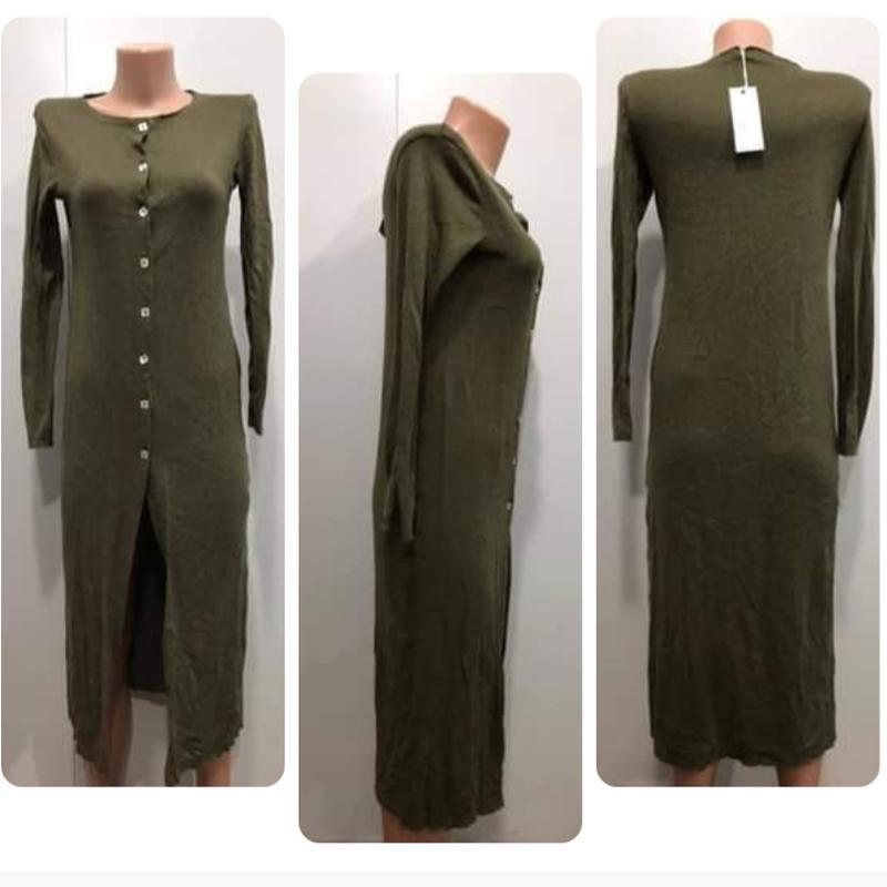 Нова подовжень кардиган на гудзиках з черепашок, кольору хакі, розмір S Виробництво Італія Плечі 42 см Пог 48 см Довжина 118 см Рукав-55 см Пот 44 см