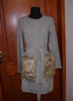кардиган Оригінально пошито. Тканина 100 кашемір Колір сірий, різнобарвий. по боках гарненькі пухнасті кишені. виробник Турція окружність грудей:92+- окружність талії: 94+- окружність бедер 94+- довжина виробу:86 рукав 59