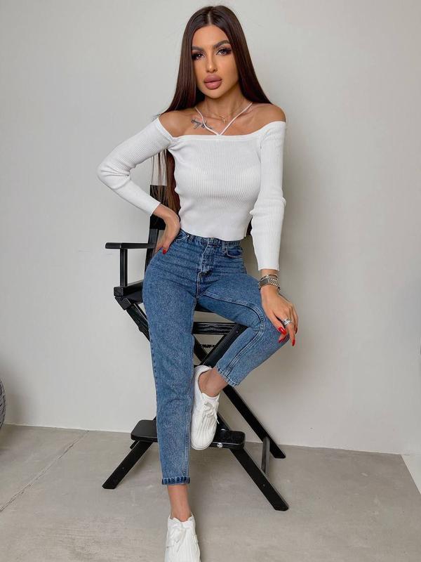 ♟♟♟Новинка 2022♟♟♟ 2217 🌲 Трендова кофтинка з відкритими плечима Машинна в'язка •2 кольори: чорні та білі •Розмір універсал хс-м • Ціна дроп 510 грн