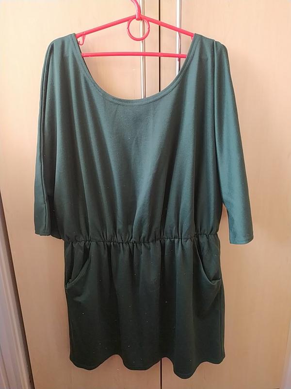 зеленого кольору, довжина 95 см, ОГ 60 см, ОТ 44 на резинці тягнеться до 65 см, ОБ 65 см, рукав 30 см