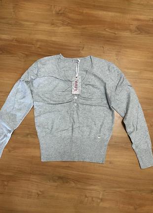 Гарна кофта Тканина: м'який трикотаж (20% вовна, 15% ангора,55% поліестер,10% еластан) Розмір універсал 42-46 Є світлий сірий і темний