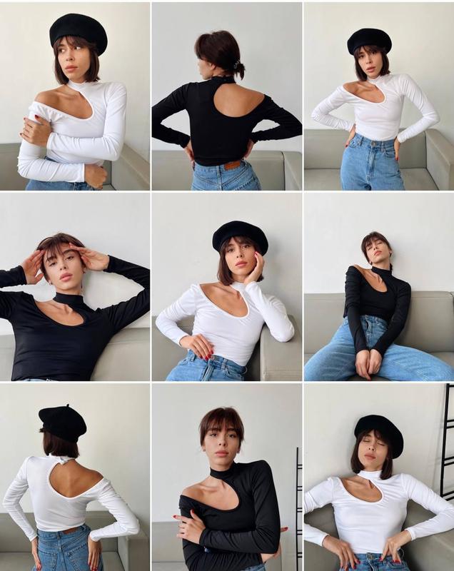 Лонгслів🔶 Мод 1354 bb📍виробник Одеса ▫️Тканина: мікродайвінг ▫️Розмір: 42-44 та 44-46 ▫️Колір : чорний та білий Супер стильний, обтягуючий лонгслів з трендовим декоративним вирізом та вшитим чокером Приємна до тіла, м‘яка тканина. Чокер застібається на кнопочку. 📌ЗАМІРИ ВИРОБУ (добре тягнеться): 42-44 / 44-46 ОГ 84-90 см / 90-96 см ОТ 62-68 см / 68-76 см Рукав 72 см / 72 см Довжина 52 см 🛒ВІДПРАВКА протягом 3-7 робочих днів‼️ Вартість 420 грн