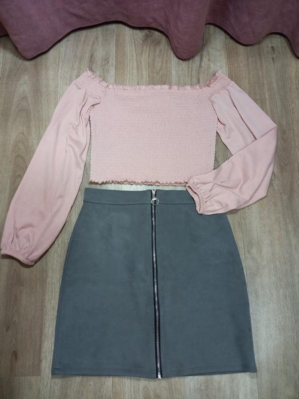 Стильная укороченная кофточка с открытыми плечами. размер М. Юбка, размер L.