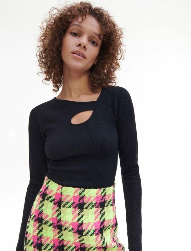 Лонгслів із текстурованного трикотажу Reserved M-L * асиметричний виріз горловини * ефектний виріз спереду * довгі вузькі рукави 90% ПОЛІАМІД, 10% ЕЛАСТАН *ПРАТИ В ПРАЛЬНІЙ МАШИНІ ПРИ МАКС. ТЕМП.30°C * НЕ СУШИТИ В СУШАРЦІ БАРАБАННОГО ТИПУ * НЕ ВІДБІЛЮВАТИ * ПРАСУВАТИ ПРИ МАКС. ТЕМП.110°C - БЕЗ ПАРИ * НЕ ЧИСТИТИ ХІМІЧНО