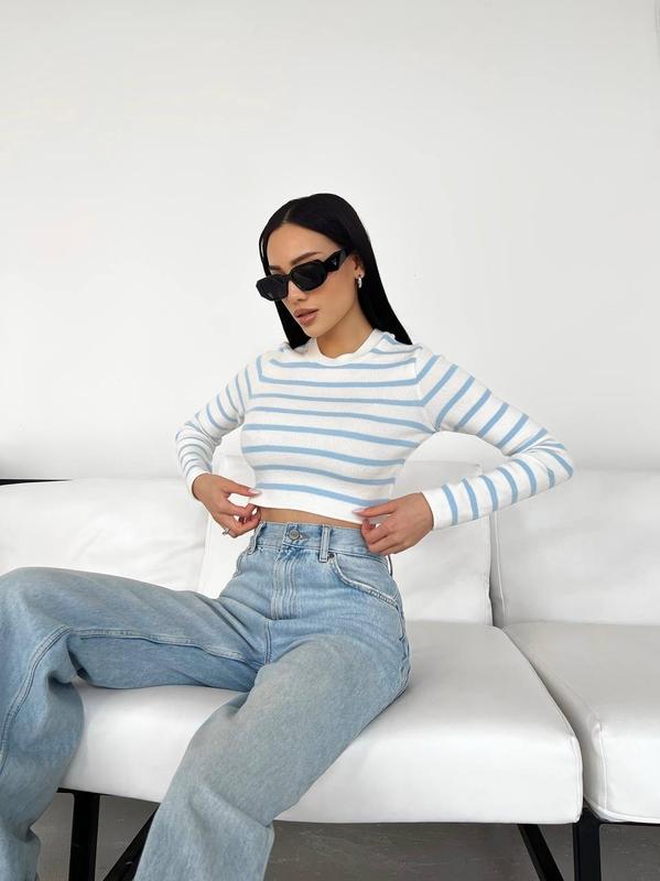 Лонгслів укорочений в смужку, кроп топ з довгим рукавом смугастий,