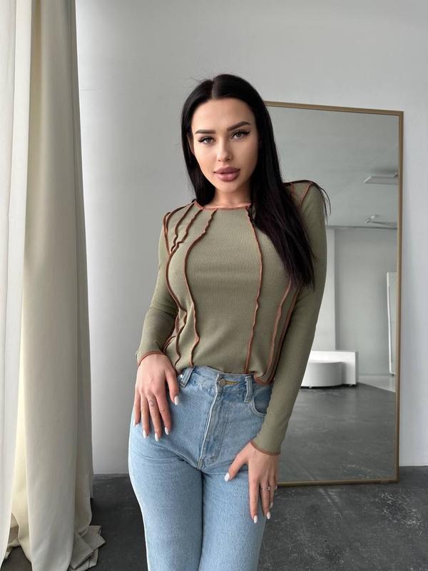 Модель:s169 Тканина : рубчик Розміри : 42-44;44-46 Кольора : єлектрик, чорний , олива , беж , молоко. Висока якість тканини Лонгслів з контрастними швами це тренд цього сезону. Універсальний фасон, який підкреслить вашу фігуру і ідеально впишеться в образ