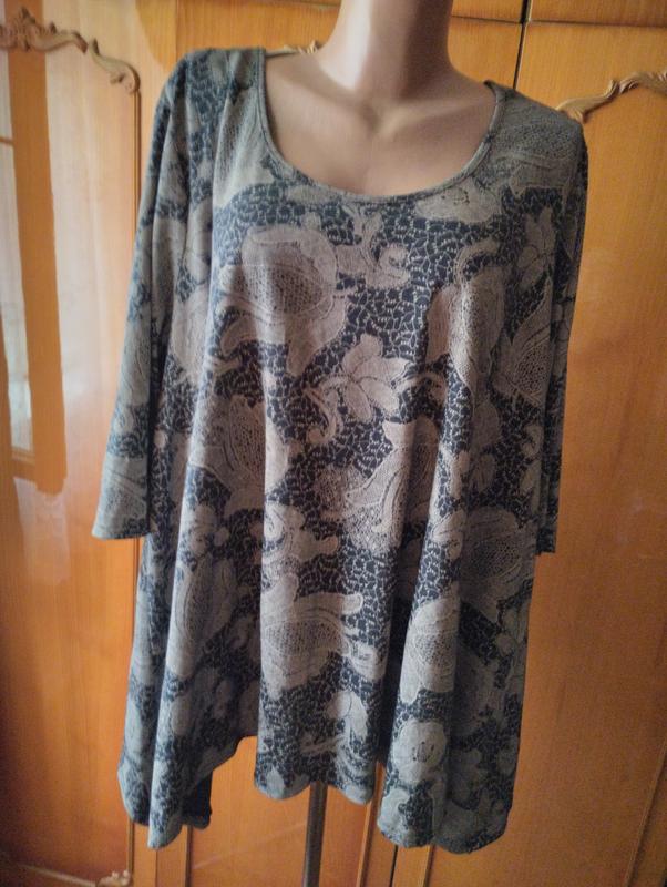 Туника очень большого размиря.Пог-75,рукав-43,длина спереди-74, по бокам-82.