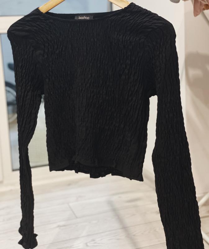 Чорний кроп топ від Boohoo, матеріал жатка , розмір S