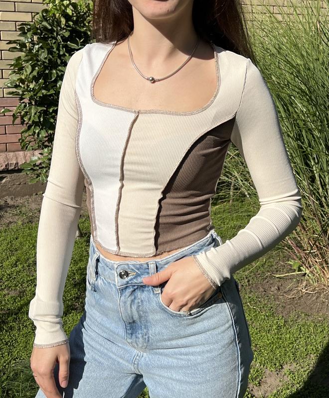 Бежево бело коричневая кофта Shein. Модель изготовлена из полиэстера и спандекса. - Приталений фасон. - Эластичный материал. - Полуобхват груди: 34 cm. - Рукав от шва: 60 cm. - Длина: 40 cm. - Параметры указаны для размера: XS - Параметры модели: 83-62-90, рост 162 см, 76 S Состояние нового, без дефектов