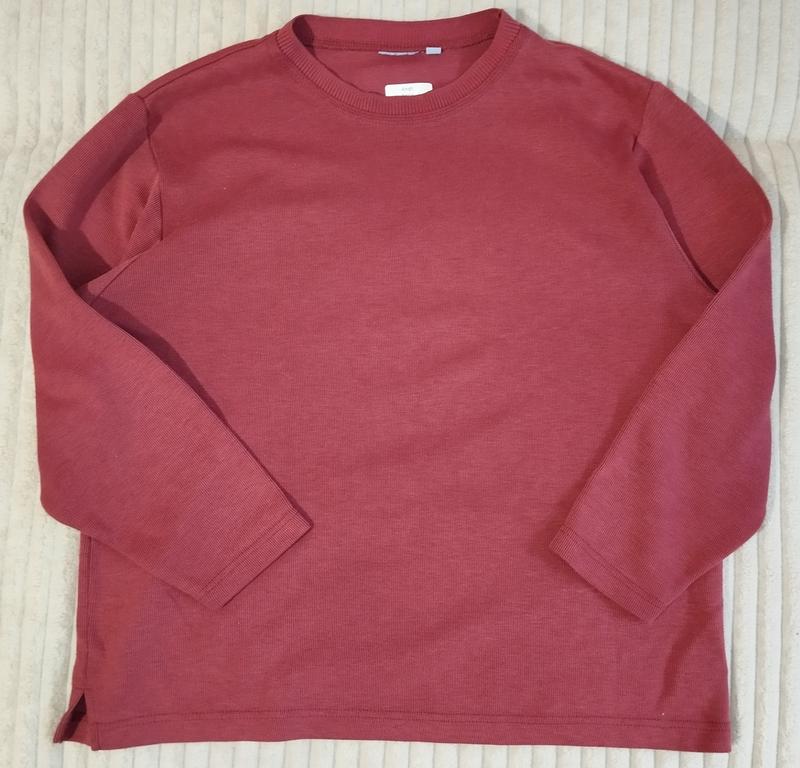 Лонгслів багряно-червоний Стан 8/10 Довжина від плечей 64 Рукав 50 Ширина плеч 44 Напівобхват грудей 53 Якщо маєте додаткові запитання, пишіть в особисті !