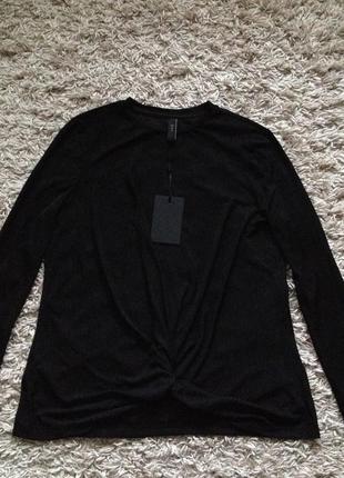 Кофтинка-лонгслів, на довгий рукав, з круглою горловиною та переплетенням на талії, чорного кольору, з тоненької приємної на дотик тканини - віскоза, пасуватиме під будь-який низ (класичні штани, джинси, спідниці, шорти ...), з біркою. Розмір - XS (8/36/великомірить на S). Бренд - Y.A.S