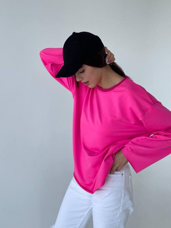 Лонгслів🥰 Мод: 5036-115 Колір: малина Розмір: 42-48 (oversize) Тканина: двухнитка, комір - РІБАНА
