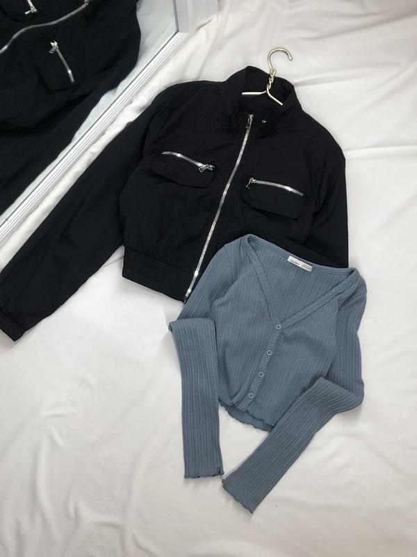📌В посте две вещи📌 🏷 349грн Голубой кроптоп💙 В идеальном состоянии❗️ Размер Хс 🏷 399грн Черная укороченная ветровка🖤 В идеальном состоянии❗️ Размер М-Л По деталям в дырект💌