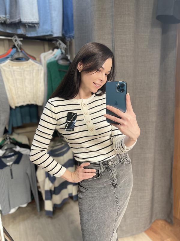 Лонгслів у рубчик в полоску на ґудзиках. Розмір універсал. Виробник Туреччина