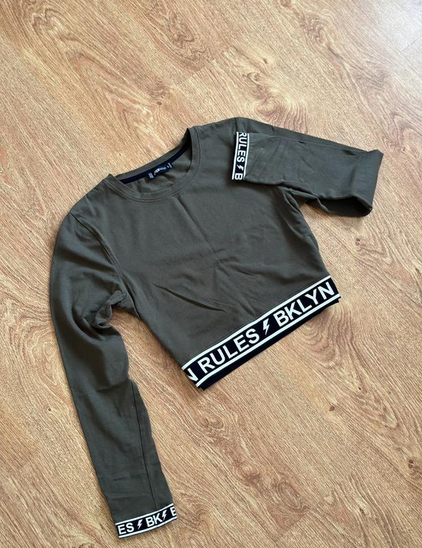 Класний лонг з надписами! Довжина по спинці 41 см, рукав 57 см, колір вживу більш зеленіший, камера не передає