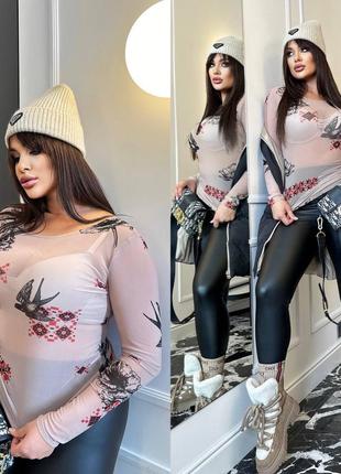 Жіночий лонгслів сітка Авторський український принт, орнамент 🔥 Виконаний з мʼякої еластичної сітки, яка пасуватиме щосезону. Принт не стирається при прані. Закохуй у деталі 😍 Тільки ручне прання👍 Мод. 212 Розміри : 48-52,54-58 Кольори : беж, білий Заміри : 48-52 ог до 116 см 54-58 ог до 135 см