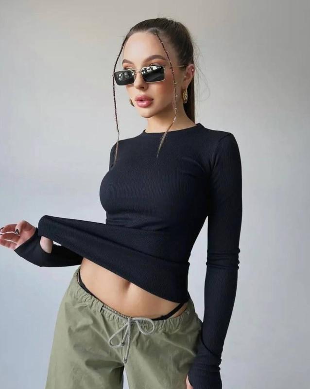 НОВИНКА🇺🇦 🔸Лонгслив ▪️Модель: 1511 ▪️Ткань: рубчик резинка (Турция) ▪️Размер: 42-46 (one size) ▪️Цвет: черный Супер качество по низкой цене🔥 💬Базовый лонгслив из трикотажного рубчика🔝 На рукавчиках вырезы для пальчиков🔥 Качественная плотная ткань. ПАРАМЕТРИ (тягнеться): ОГ 88-96 см ОТ 64-70 см Длина 50 см •~•~•~•~•~•~•~•~•~•~•~•~•~